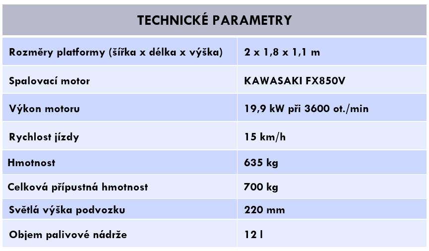 - Transportní platforma pro obecné účely použití odpovídající jejím rozměrům, nosnosti a výkonu