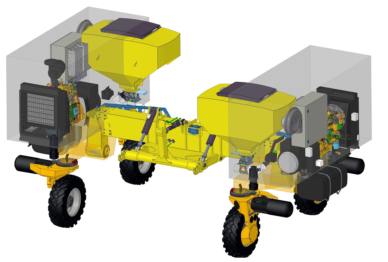 cíl vyvinout bočnicové moduly, dva typy pracovních modulů (setí a meziřádková